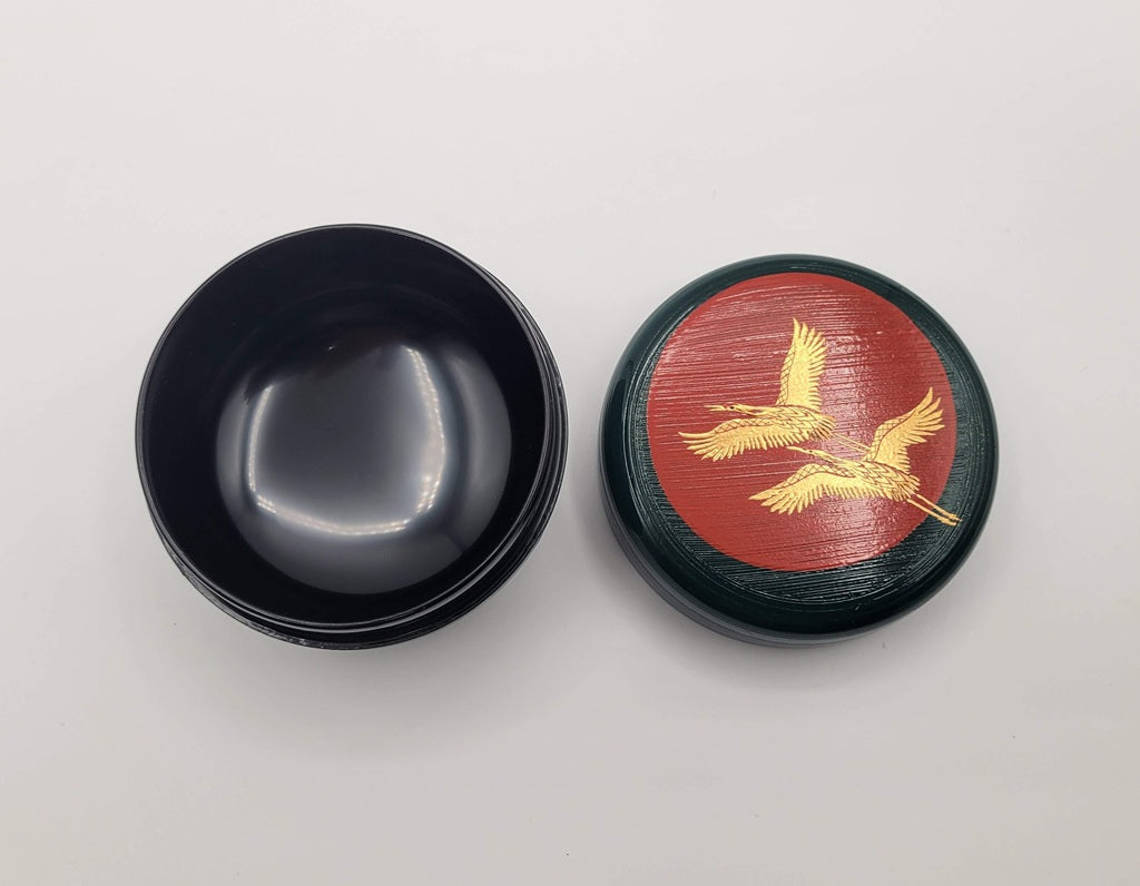 Deze natsume is een perfect cadeau voor speciale mijlpalen, zoals een huwelijk, een nieuwjaarsviering of een andere betekenisvolle overgang in het leven. Het motief van Kraanvogels bij de Zonsopgang (Hinode-zuru, 日の出鶴) versterkt die symboliek: de kraanvogels staan voor lang leven, trouw en voorspoed, terwijl de zonsopgang een nieuw begin, hoop en voorspoed vertegenwoordigt. Samen verbeelden zij een frisse start en een harmonieuze toekomst, met aandacht voor wat achtergelaten wordt en vertrouwen in wat komen gaat.